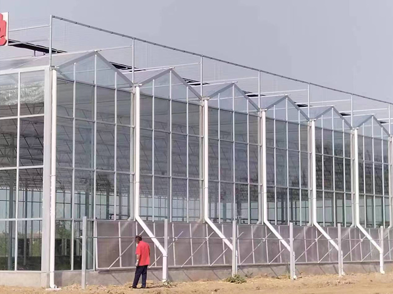 1、該類溫室采用熱鍍鋅鋼制骨架,覆蓋材料為國(guó)標(biāo)5mm厚浮法玻璃,其透光率>90%。